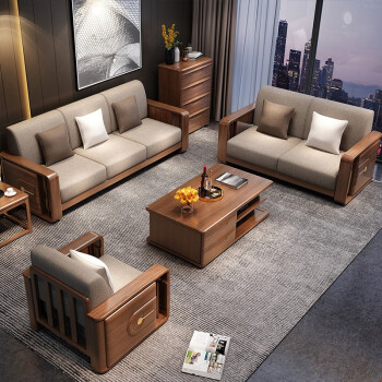 聯匠のソファー胡桃木の実木ソファ冬夏両用の物置ソファ多機能の貴妃の回転角ソファーのリビングルームのセットは1+2+3現代中国式ソファのセットは4人+貴妃の足+シングル+6131茶のテーブル+いくつかの高箱のタイプです。